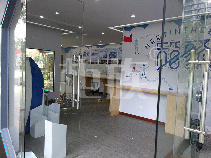 The post station is made of two containers in tandem, and the front wall is made of large area of glass doors and Windows, with smooth lines, sharp edges and corners, fashionable shapes, transparent and bright, which well highlights the symbolic and open features of the post station.