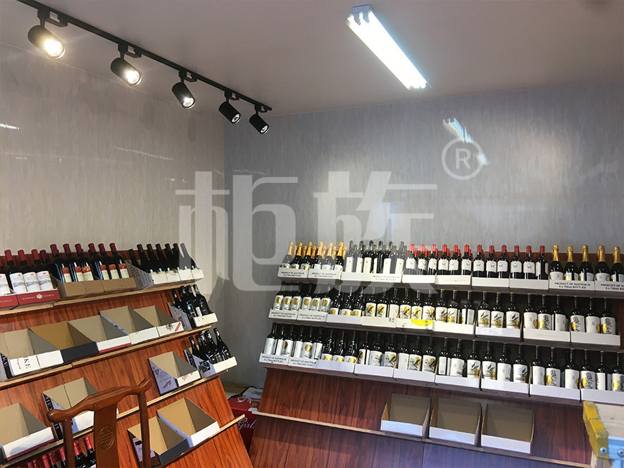 展柜外觀使用黑色噴漆,簡(jiǎn)潔大氣。內(nèi)部平面裝修,搭配射燈,視覺(jué)明凈,可以很好地將顧客的注意力吸引至琳瑯滿目的紅酒產(chǎn)品上。
